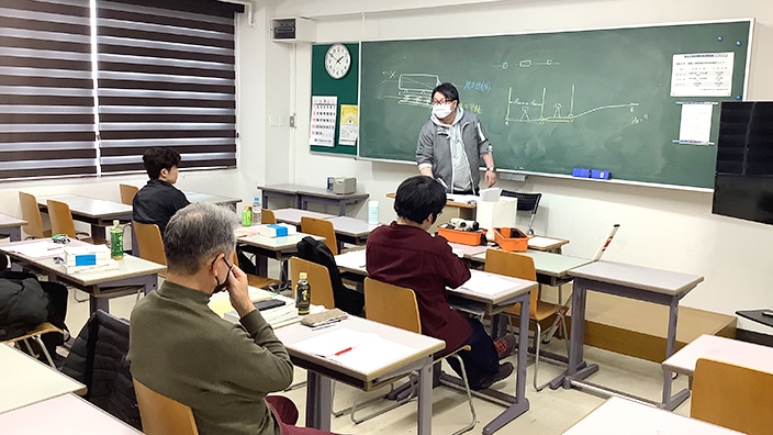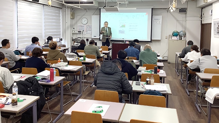 測量士コース、測量士補コースともに、過去に出題された国家試験問題を分析したセミナー問題を基に、本校教員及び講師による専門分野別の講義を展開しました。